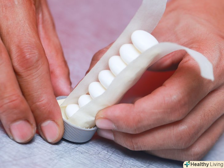 Розташуйте Mentos на одній з 10,2 см смужок скотча. вони повинні розташовуватися так само, як і в оригінальній упаковці: один на одному, як стопка монет.