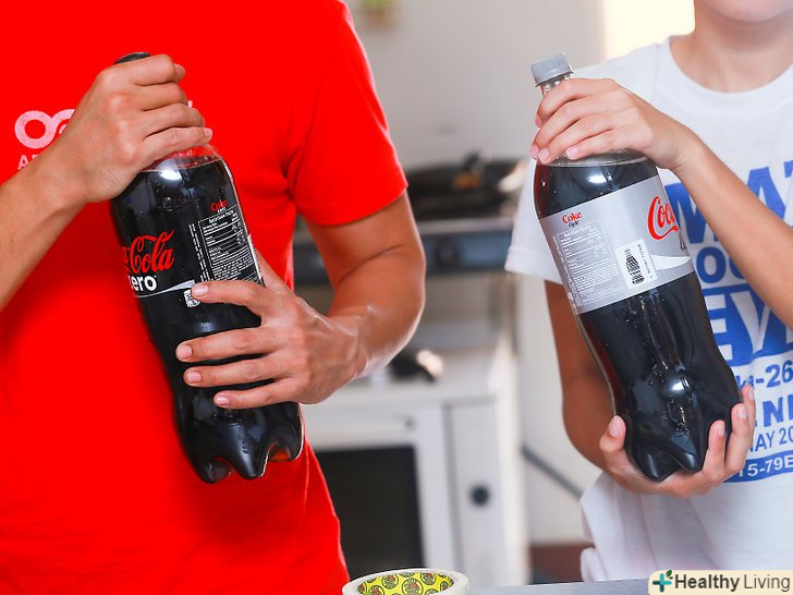 Купіть 1-2х літрову пляшку дієтичної коли. для конкретного прикладу ми використовуємо дієтичну колу, але ви можете взяти будь-яку содову (вона повинна містити аспартам).- Тепла газована вода вибухає інтенсивніше, тому намагайтеся не використовувати холодну/прохолодну содову. [2] для отримання найкращих результатів купуйте газовану воду кімнатної температури, а потім залиште її у дворі на сонці, або ж поставте в ємність з гарячою (не киплячою) водою за кілька годин до проведення експерименту.