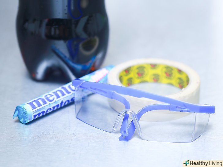Зберіть ваші матеріали. Принесіть 2-х літрову пляшку дієтичної Кока-Коли, упаковку Mentos, скотч і захисні окуляри на місце побудови вашої ракети.
