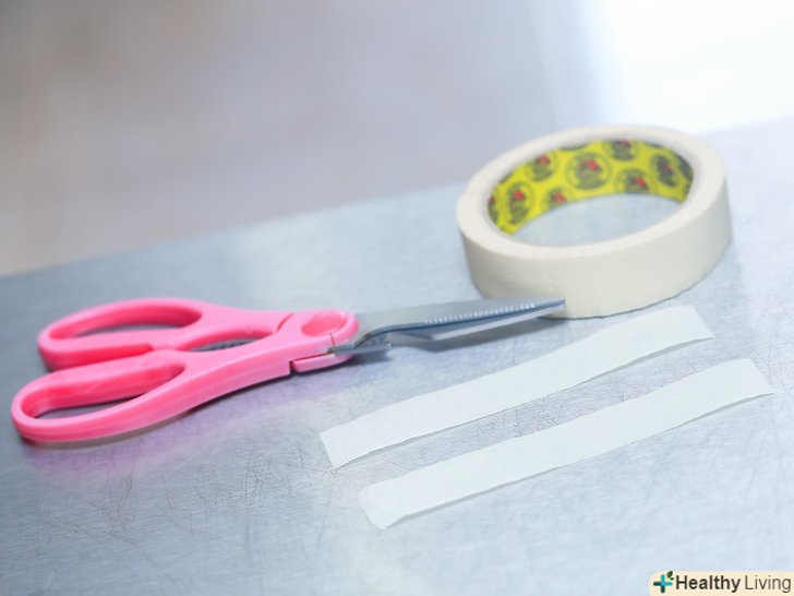 Відріжте дві 10,2 см смужки скотча. покладіть їх на плоску поверхню липкою стороною вгору. Не дозволяйте їм склеїтися між собою.