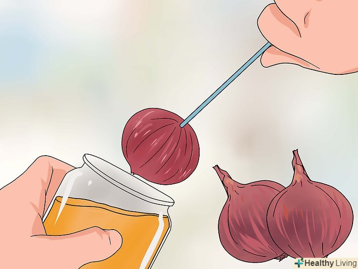 Приготуйте карамельне "ласощі". цей розіграш можна влаштувати на Хеллоуїн. Сестра не зможе встояти перед карамельними "яблуками", які ви залишите для неї на столі. З підготовкою доведеться повозитися, але все це не так вже й складно.- Очистіть кілька головок сирої цибулі (якщо взяти одну, це буде виглядати підозріло) і застроміть в них палички.