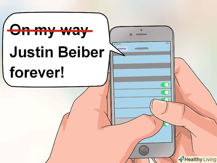 Перенастройте автокорректор в її телефоні. якщо ваша сестра часто пише смс, цей розіграш - те, що треба. Потайки візьміть телефон сестри і проаналізуйте повідомлення, які вона пише. Визначте, які слова і фрази вона використовує найчастіше, наприклад, "Скоро буду". Налаштуйте коректор так, щоб він замінював цю фразу на щось дурне або дивне.- Наприклад, кожен раз, коли вона буде набирати "Скоро буду", телефон буде замінювати цю фразу на "Люблю Діму Білана".