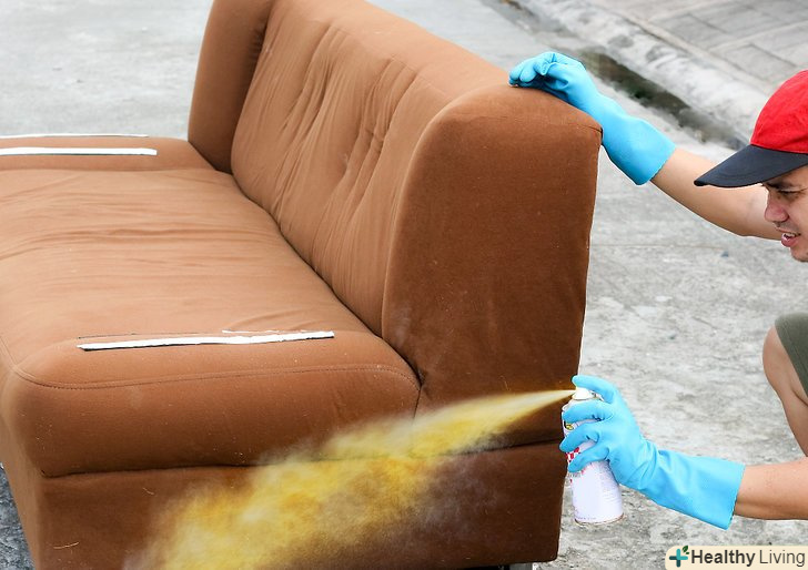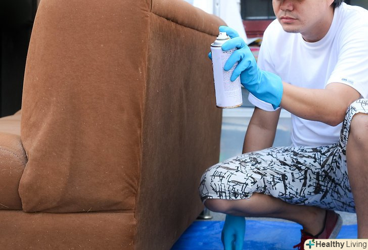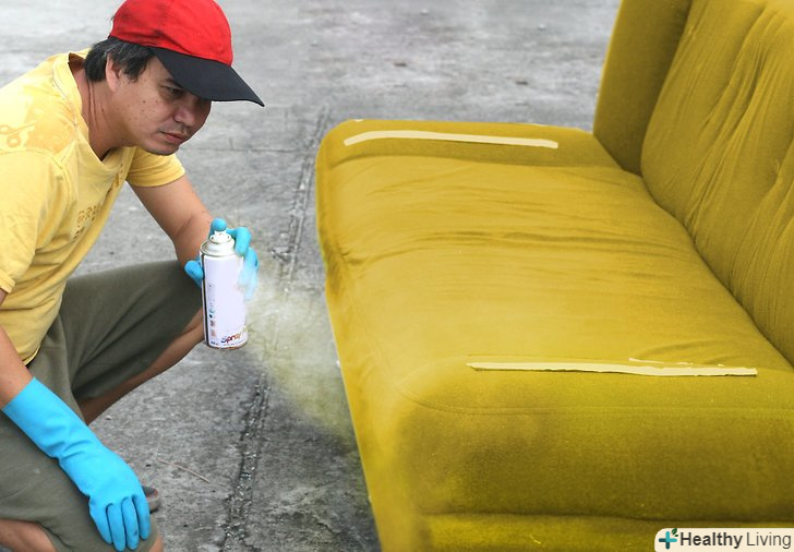 Купіть необхідну фарбу. для фарбування дивана з тканинною оббивкою вам буде потрібно спеціальна фарба для тканини, яка зможе рівномірно просочити всю поверхню. Звичайна аерозольна фарба не підійде, тому що через неї оббивка стане жорсткою і буде хрустіти, тому жодна людина не ризикне потім присісти на такий диван. Купіть особливу фарбу в балончику в спеціальному магазині або замовте в Інтернеті. Продавець допоможе вам визначитися у виборі.- Фарба повинна відповідати вашому типу тканини. Переконайтеся, що на балончику написано, що ця фарба підходить для обробки оббивки дивана, тому що навіть не всі спеціальні фарби добре лягають на оббивку. Якщо диван не вказано в описі, поговоріть з продавцем. Можна навіть відправити електронний лист виробнику, щоб позбутися від сумнівів.