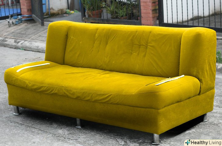 Виберіть диван. Якщо у вас вже є дуже старий, затертий і обшарпаний диван, він підійде якнайкраще. Не забудьте запитати у людини, який віддав вам його, чи можна вам змінити його зовнішній вигляд. Швидше за все, людина дозволить вам пофарбувати диван або навіть викинути його за умови, що ви все зробите самі. Також слід обговорити майбутній колір дивана з людьми, з якими ви живете, до того, як приступити до переробки. Якщо тільки вам важливо колірне поєднання, однією проблемою у вас буде менше. Пам'ятайте, що в цій статті піде мова лише про фарбування тканинної оббивки. Якщо у вас диван з шкіряним, вініловим покриттям або поверхнею з поліестеру, вам потрібно буде пошукати інший спосіб забарвлення, тому що всі ці поверхні, як правило, відштовхують фарбу.- Цілком можливо, що ви захочете пофарбувати не той диван, який стоїть у вас вдома. Може, ви бачили приголомшливий диван в комісійному магазині, але вам не подобався колір. Не ламайте голову і купуйте його, тому що фарбування вирішить вашу проблему.