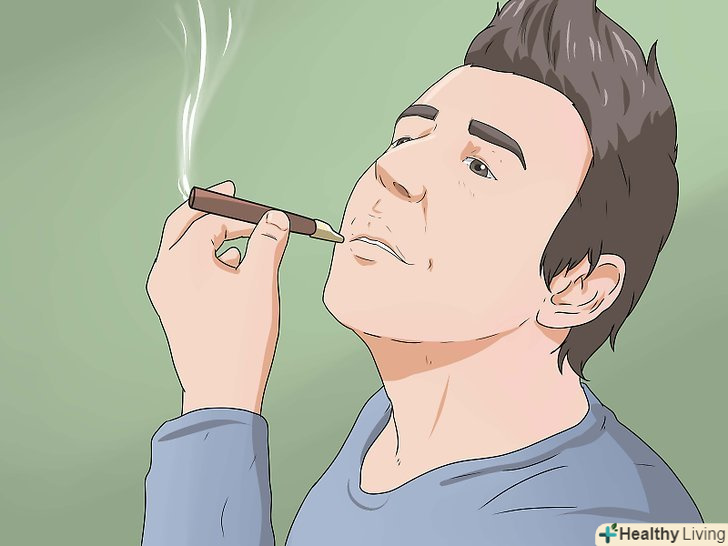 Очистіть пластиковий наконечник від застряглого в ньому засипаного тютюну. коли сигара буде готова, можете, при бажанні, зняти наконечник, щоб прибрати зайвий тютюн. Витрусіть його або видуйте перед тим, як надягати пластик назад.- Також можете спробувати видути тютюн в сигару, не знімаючи наконечника. Іноді його досить важко рівно поставити на місце, тому краще зовсім не чіпати його, раз ви збираєтеся його використовувати при палінні.