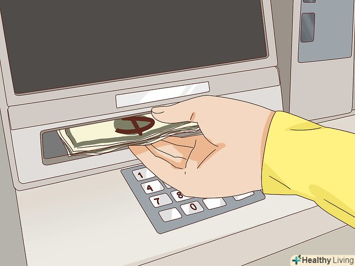 Поступово знімайте гроші з карткового рахунку. якщо ви хочете безтурботно подорожувати, то вам будуть потрібні гроші. Якщо знімати великі суми, то можуть виникнути підозри, тому не поспішайте спустошувати свій банківський рахунок. Знімайте гроші невеликими сумами, поки не набереться необхідну кількість. По можливості закрийте порожній банківський рахунок, щоб вже не думати про нього. [11]- Носити з собою великі суми грошей трохи страшно, тому будьте обачні. Беріть з собою тільки необхідні суми, а решту зберігайте в безпечному місці.