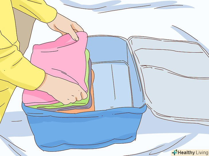 Складіть одяг та інші необхідні речі. ваші потреби залежать від пункту призначення. Як мінімум знадобляться змінний одяг, їжа та інші необхідні речі. Врахуйте, що зазвичай при спробі сховатися не буде можливості забрати з собою багато речей. [12]- Важливо подбати про себе далеко від дому. Зазвичай в цьому допомагають гроші. Також продумайте, чим ви займетеся після прибуття в пункт призначення.