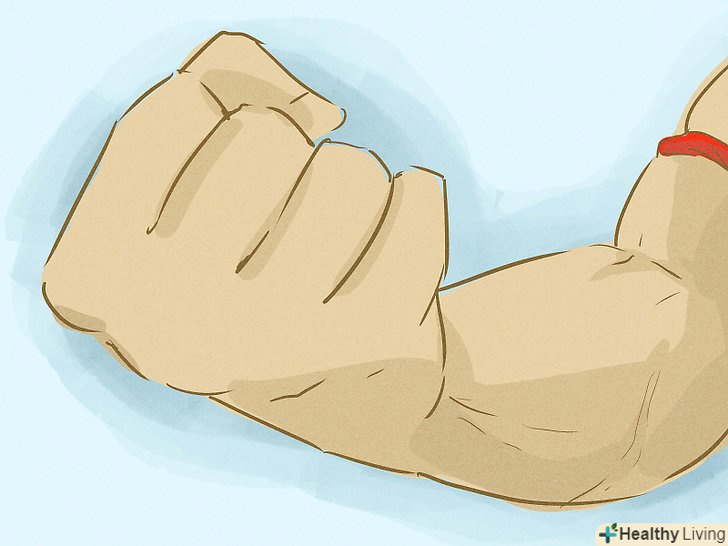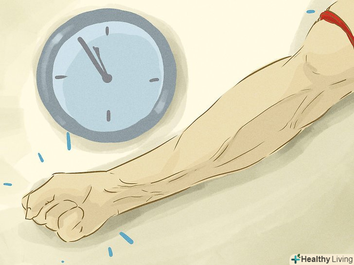 Стисніть руку в кулак. Зав'язавши стрічку навколо руки, стисніть і розтисніть кулак кілька разів. Таким чином ви розженете кров, щоб вени трохи здулися. [17]
