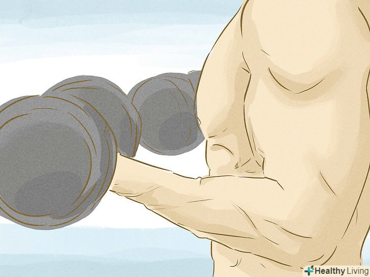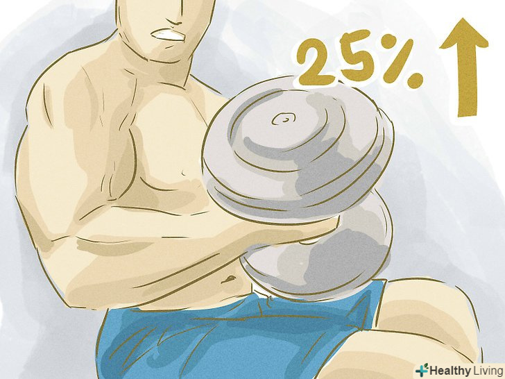 Нарощуйте м'язову масу. щоб вени набрякли і були видні, необхідно наростити м'язову масу. Ви не досягнете таких м'язів, якщо будете робити 3 підходи по 10 повторень, ніж зазвичай займаються на тренуваннях. Для того щоб наростити м'язи, потрібно виконувати від 3-5 повторень з важкою вагою.- Ви можете почати з 6 підходів по 5 повторень, але поступово потрібно збільшити вагу обтяжень (гантелей або штанги) на 25 %. [6] щоб набрати м'язову масу, потрібно докласти чимало зусиль.