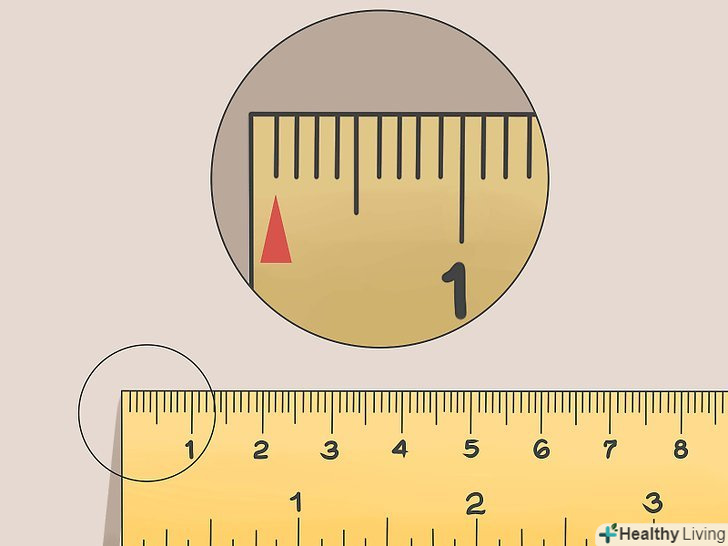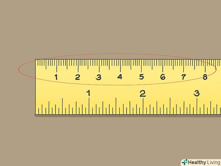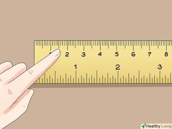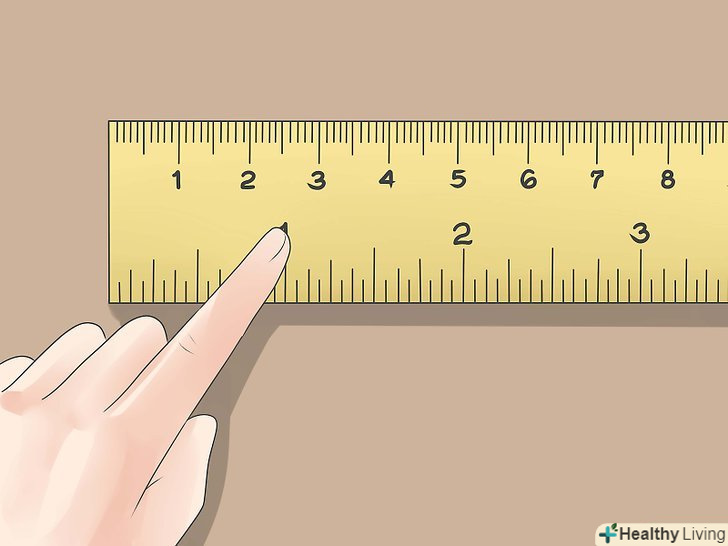 Користуйтеся метричною або десятковою лінійкою. тоді ви будете вимірювати в десятковій системі, як прийнято в метричних вимірах. [14]- Вважайте, що рисочки достовірніше – це сантиметри. Просувайтеся до найближчої сантиметрової позначки. Вона буде означати довжину в»цілих одиницях". Наприклад, 10 сантиметрів.