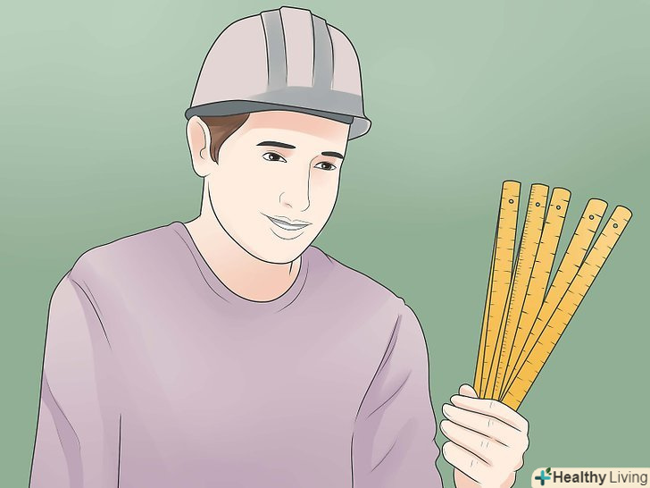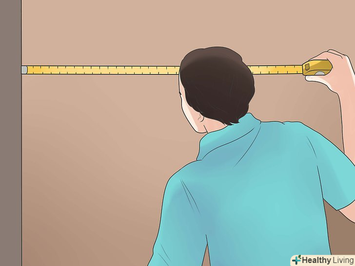 Для вимірювання відстані між об'єктами, наприклад, між стінами, користуйтеся рулеткою. найкраще тут підійде висувна металева рулетка.- Кінець зНульовою відміткою притуліть до однієї стіни, або нехай її хто-небудь притримує, потім висуньте стрічку до іншої стіни.