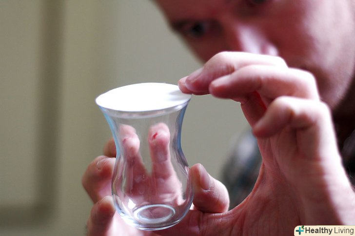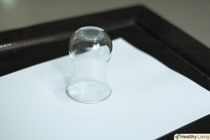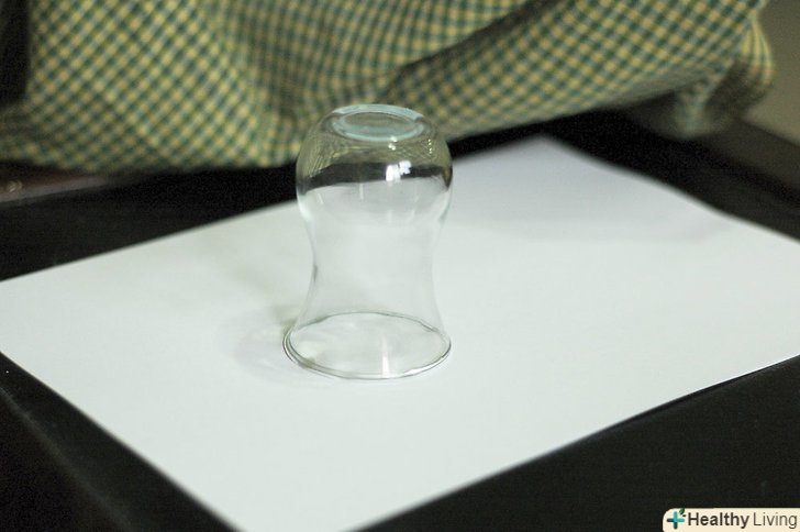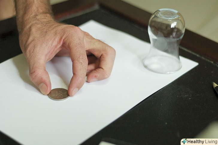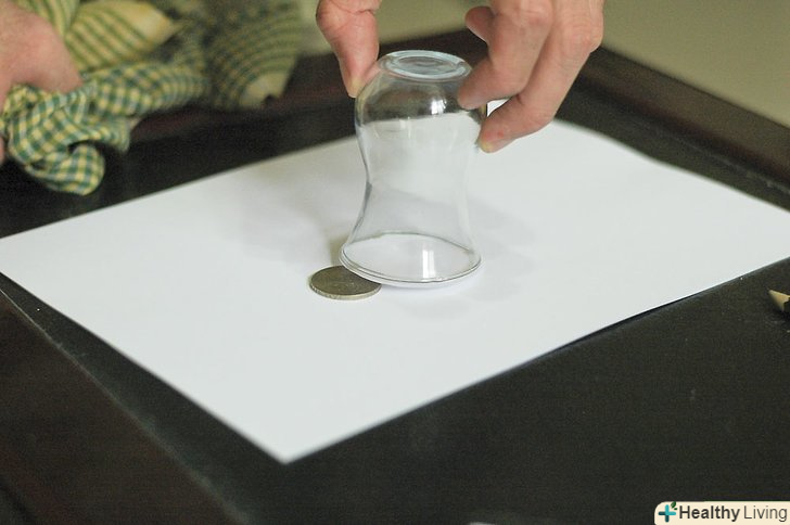 Зберіть потрібні речі: аркуш чистого паперу, прозора скляна чашка, ручка або олівець, ножиці, прозора клейка стрічка, монета, досить великий шматок тканини, щоб накрити чашку.