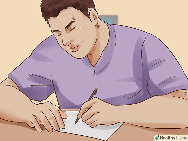 Якщо ви відчули нудоту, присядьте. у разі занадто сильного запаморочення і слабкості негайно сядьте, піднявши коліна і охопивши їх руками. Помістіть голову між колін, намагаючись дихати глибше.- Запаморочення може бути викликано різними проблемами зі здоров'ям, наприклад, низьким вмістом цукру в крові, захворюванням очей, нервовими розладами, порушенням рівноваги внутрішнього вуха [1] .