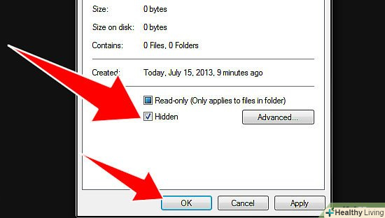 - Можна зробити файли невидимими за допомогою функції «приховування " на Windows. Цю опцію можна знайти в полі "атрибути «у вікні»Властивості файлу". [11]