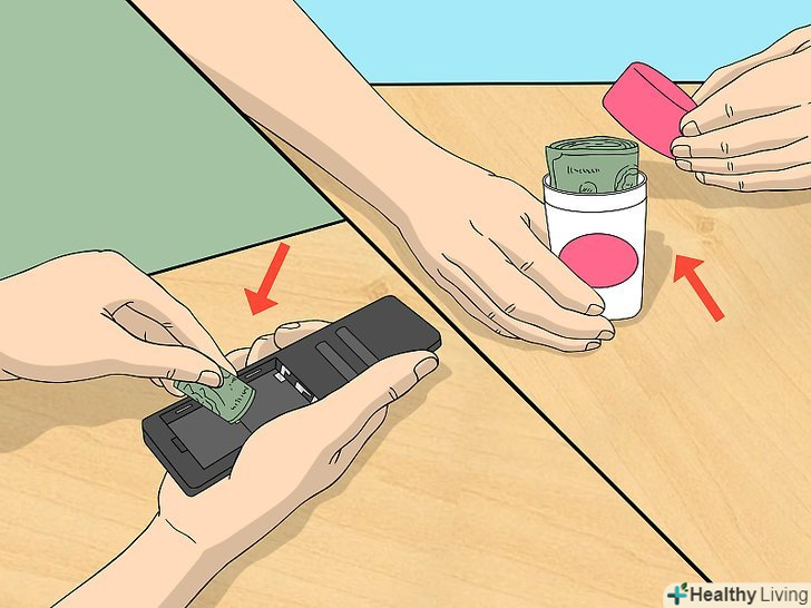 Знайдіть який-небудь контейнер для зберігання свого предмета. насправді, існує безліч способів придумати місце для зберігання якогось предмета. Наприклад, можна взяти старі упаковки, коробки, банки, який більше не використовуються, і покласти туди кілька предметів. Це особливо корисно, якщо у вашій родині зазвичай не користуються різними старими побутовими предметами (наприклад, пультами від телевізора) або не користуються упаковками від цих предметів.- Зніміть пластикову кришку від дезодоранту, розберіть його і за допомогою інструментів видаліть ту частину, де знаходиться сама рідина (або гель). Помістіть туди свій предмет, а потім закрийте зверху звичайною пластиковою кришкою.