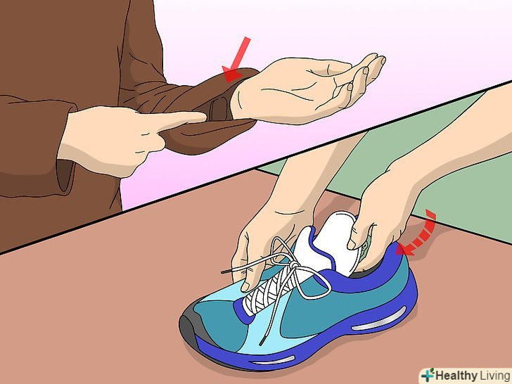 - Можна прив'язати предмет до внутрішньої частини взуття. Це особливо гарна ідея, якщо у вас є туфлі з гострим носком – там є простір, до якого не доходять пальці.