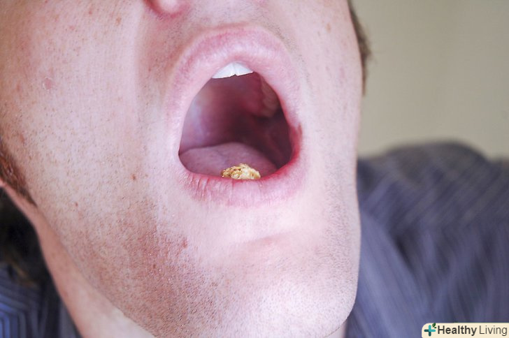 Приберіть мову зі шляху або притисніть його вниз. злегка розкрийте щелепу, щоб запобігти потраплянню шматочка прямо в горло. Теж не здорово.