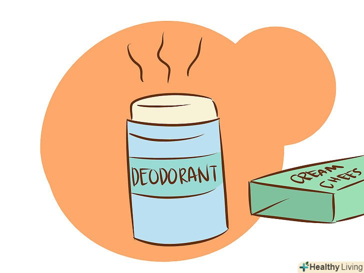 Заповніть баночку від дезодоранту вершковим сиром. зніміть насадку від дезодоранту-олівця і замініть її шматочком вершкового сиру. Звичайно, попередньо цьому шматочку сиру потрібно надати форму насадки від дезодоранту.