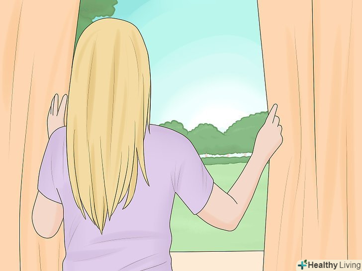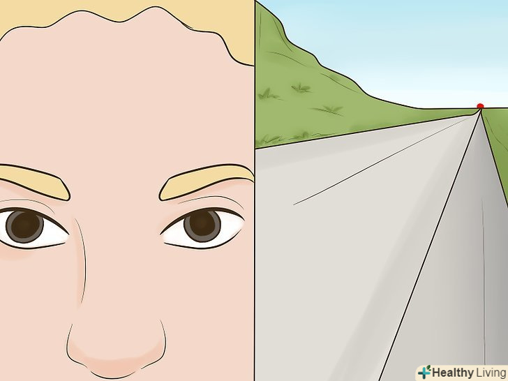 Сфокусуйтеся на віддаленому об'єкті або розфокусуйте погляд. коли ви дивитеся вдалину, зіниці розширюються. [2] інший спосіб домогтися цього — максимально розфокусувати погляд, щоб перед очима все розпливлося. Якщо ви все зробили правильно, то відчуєте, як розслабляться ваші очі. Якщо в очах почало двоїтися, то, ймовірно, ви їх скосили, і вам потрібно спробувати заново.- Використовуючи ці техніки, ви не зможете побачити, що відбувається з вашими зіницями, тому зніміть себе на відео або попросіть друга поспостерігати.