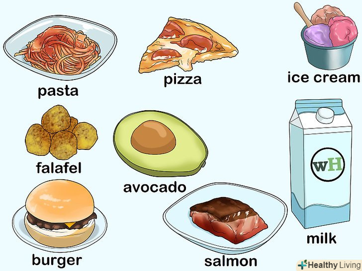 Їжте продукти з високим вмістом вуглеводів. Перед тим як пити алкогольні напої, з'їжте блюдо з високим вмістом вуглеводів. Коли ви почнете вживати спиртні напої, вуглеводи абсорбують зайвий алкоголь. Молочні продукти і продукти з високим вмістом натуральних жирів також є хорошим варіантом, тому що вони обволікають стінки шлунка. Завдяки цьому сповільнюється всмоктування алкоголю. [9]- Перед вживанням алкоголю можна з'їсти макарони, фалафель, бургер або сендвіч, піцу, молоко, морозиво, авокадо або лосось. [10]