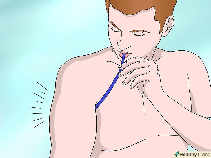 Дуньте в соломинку, щоб відтворити звук пуканія. Візьміть один кінець соломинки в рот і дуньте в нього. У вас вийдуть звуки, що нагадують пукання. [4]