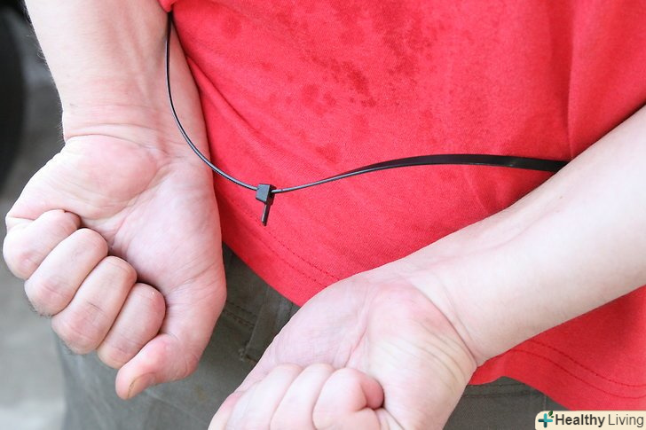 - Затягніть стяжку. щоб цей метод спрацював, стяжка повинна бути затягнута якомога тугіше, так її легше буде розбити. Не важливо, спереду чи у вас затягнуті руки або ззаду, щоб затягнути стяжку просто потягніть за кінець.