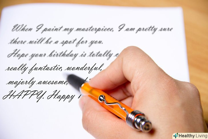 Якщо привід привітання досить загальний, наприклад, день народження, подумайте, як написати те, чого не напише більше ніхто. наприклад, ви знаєте “що іменинник дуже хоче отримати в подарунок, скажімо, телефон, напишіть щось на кшталт: "сподіваюся, тобі подарують той телефон, і він виявиться класним!"Потрібно, щоб людина зрозуміла, що Ви часто про нього думаєте і добре його знаєте.