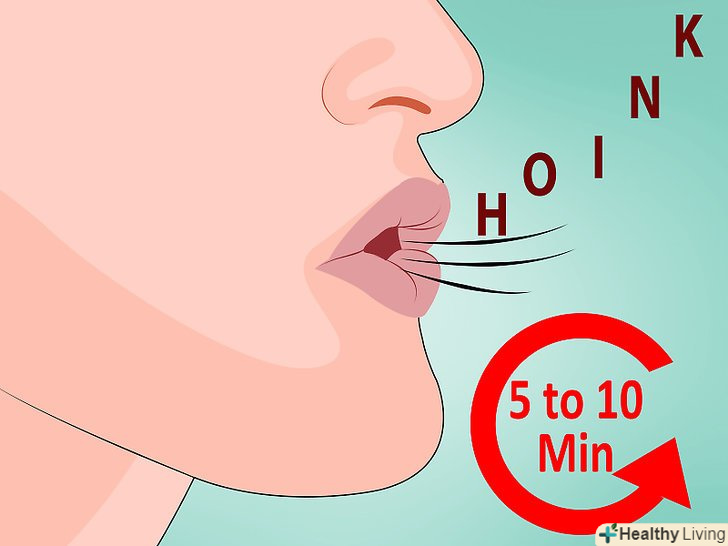 Тренуйтеся вимовляти слово «фюйть». відпрацьовуйте його не менше 5-10 хвилин. Говоріть слово» фюйть", а потім повторюйте це ж рух губ, не видаючи звуку. [5] одночасно з цим швидко піднімайте щелепу і кадик, а язик — вперед і вгору.- У момент проголошення слова відчуйте, як з рота виходить короткий потік повітря, хоча ви і не видихаєте.