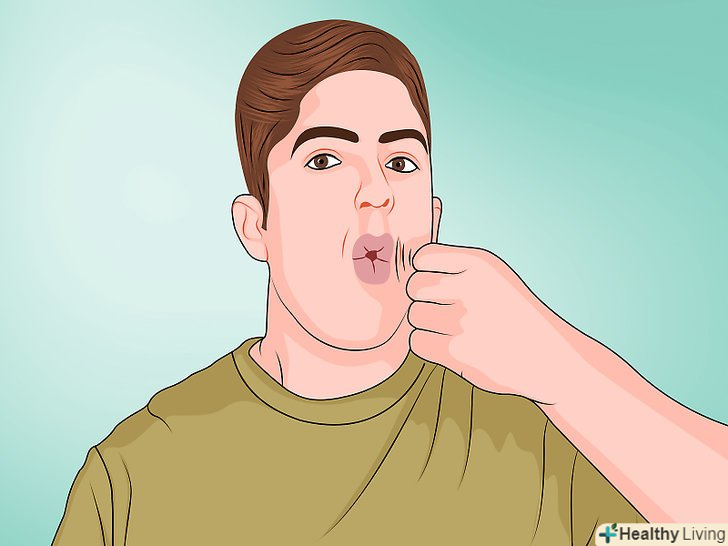 Свистіти. під час свисту губи приймають необхідну форму, що спрощує процес. [3] Якщо ви не вмієте свистіти, то складіть губи таким чином, щоб через невеликий проміжок між ними міг проходити повітря. Відтягніть язик назад.- Опустіть нижню щелепу, щоб витягнути щоки і щоб у вас була можливість вдихати більше повітря для свисту.