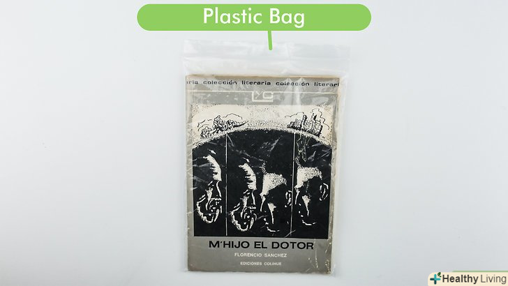 Помістіть книгу в поліетиленовий пакет із застібкою. Візьміть книгу, помістіть її в пакет із застібкою і закрийте її. Зверніть увагу, що в пакеті повинно бути повітря, не створюйте вакуумне середовище; крім того, пакет не повинен бути занадто маленьким, між ним і книгою має бути достатній простір. Можна використовувати звичайний поліетиленовий пакет.- Помістіть пакет з книгою в морозильник. Візьміть пакет з книгою і помістіть його в морозильник. Якщо можливо, приберіть продукти подалі від книги, тим самим забезпечивши необхідний потік повітря. Покладіть книгу на окрему полицю морозильної камери. [5]