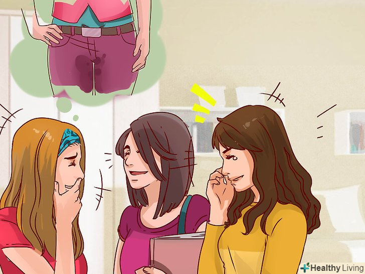 Зберігайте спокій. Пам'ятайте, це не найсерйозніша проблема. Все в цьому світі відносно. Якщо незручність-це найсерйозніша проблема, з якою ви стикалися, вам просто пощастило. Якщо ви будете гостро реагувати на ситуацію, що склалася, то, швидше за все, оточуючі вас люди помітять подію і будуть відчувати подібне збентеження. Замість цього спробуйте зберігати спокій. [4]- Можливо, ніхто не помітить, що з вами сталося. Звичайно, ви будете постійно відчувати мокру пляму, проте воно може бути ледь помітно, тому інші люди просто не звернуть на це уваги. Заспокойтеся і постарайтеся непомітно вислизнути.
