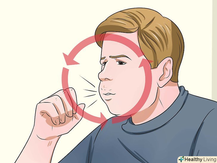 Кашляйте, поки не відчуєте біль в горлі. Якщо ви кашлянете кілька разів, то відчуєте неприємне першіння в горлі. Не перестарайтеся. Не слід дратувати горло занадто сильно. Просто покашляйте кілька разів, щоб показати людям, які Вас оточують, що ви захворіли.- Закривайте очі, коли ви кашляєте. Цим ви покажете, що відчуваєте біль в горлі. Завдяки цьому ваші симптоми будуть виглядати більш реалістично.