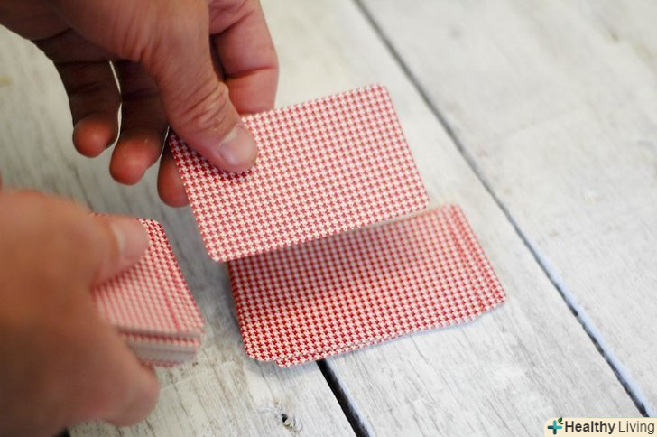 - Візьміть стопку карт, яку ви виклали "для прикладу" і покладіть їх зверху на колоду. Коли глядач повторює вашу дію, він насправді повертає карту назад