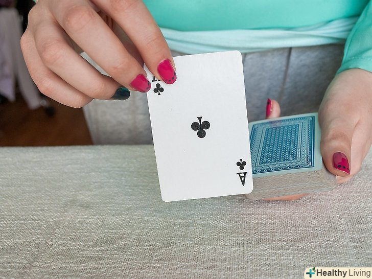 - Працюйте тільки з невеликою кількістю карт, а не з усією колодою. Менша кількість карт буде простіше утримувати і приховувати у вашій долоні.