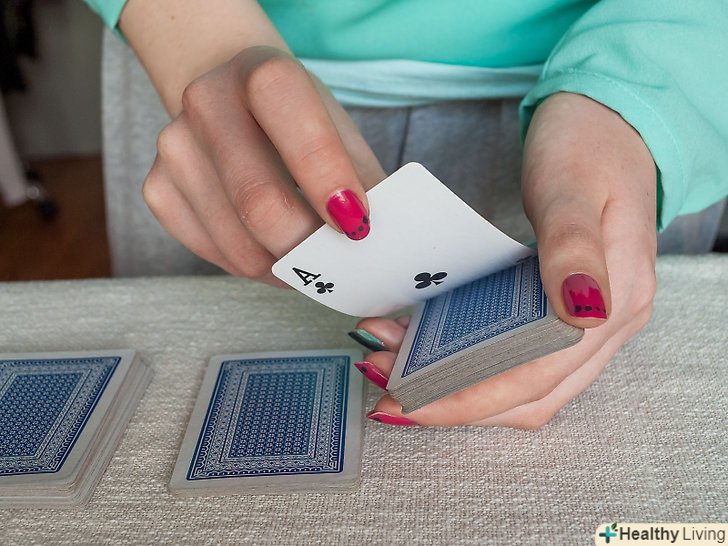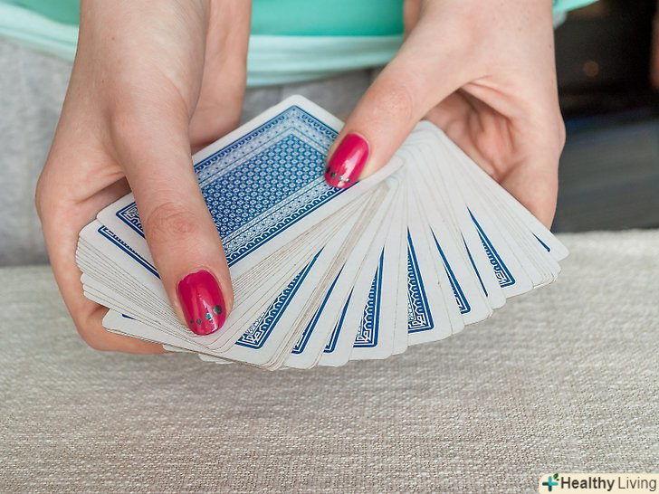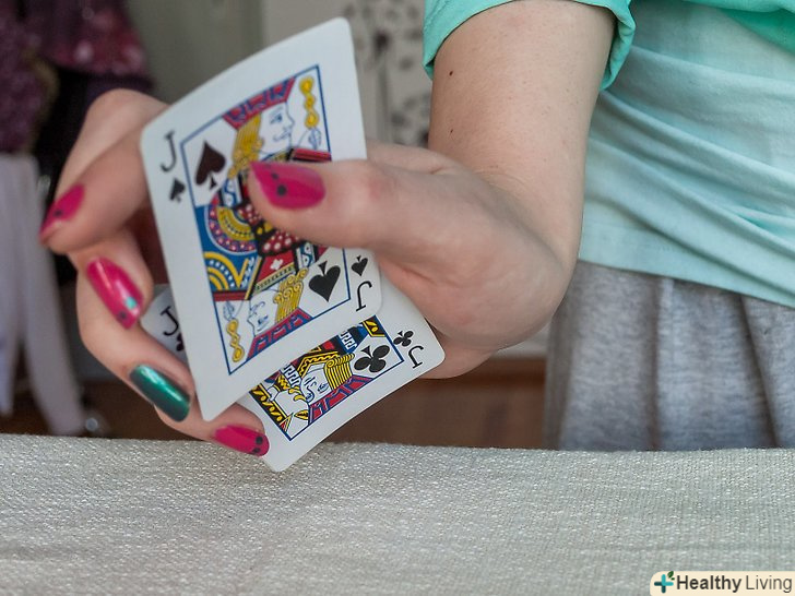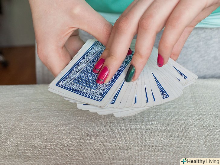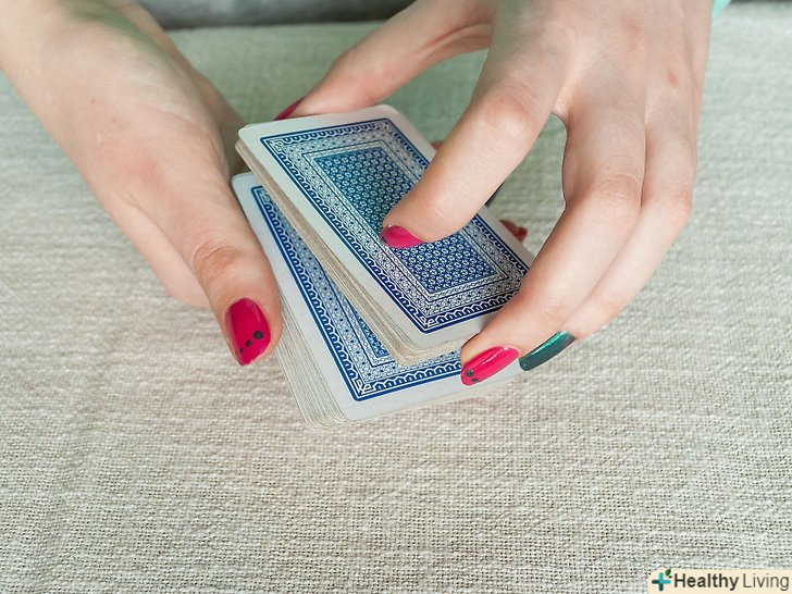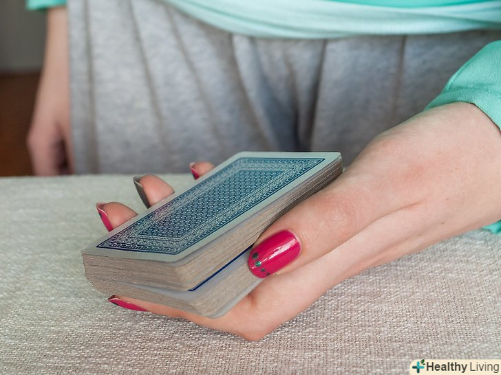 - Візьміть колоду правою рукою, притримуючи її кінчиками пальців лівою рукою.