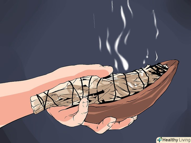 Підпаліть пучок трави і окуріть приміщення, обертаючи пучок за годинниковою стрілкою. це засіб століттями використовувалося шаманами і священнослужителями, і воно є практично у всіх релігіях. Ефективність цього засобу була доведена науково-воно допомагає людині розслабитися, заспокоїтися. Обкурювання приміщення дозволяє захистити житло і прогнати привидів. При обкурюванні будинку відкрийте вікна і не поспішайте – нехай дим наповнить приміщення і заспокоїть вас.- Для обкурювання будинку використовуються довгі пучки з стебел і листя шавлії, стягнуті мотузкою. Пучок підпалюється з одного боку. Можна також розчавити сушений шавлія в невеликій мисці і підпалити його, а потім димом окурити приміщення.