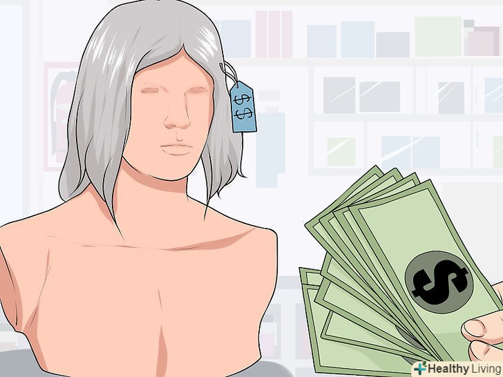 Купуйте перуку. якщо ви хочете змінити колір або довжину свого волосся для створення образу, можна купити перуку. У більшості магазинів маскарадних костюмів продаються білі перуки або перуки під сивину. Також перуку можна купити в інтернет-магазині.- Якщо ви не хочете надягати перуку, спробуйте тоніки для волосся, щоб тимчасово додати своєму волоссю білизни або сивини.
