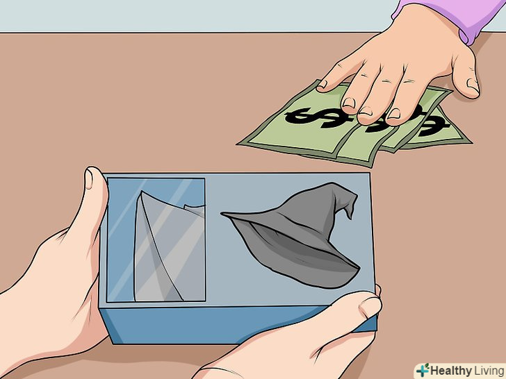 Не скупіться на Капелюх чарівника. чарівники носять високі загострені капелюхи. У більшості звичайних магазинів головних уборів і універмагів ви навряд чи знайдете таку капелюх. На щастя, ви завжди знайдете гострий капелюх у будь-якому магазині маскарадних костюмів. [6]- Якщо поблизу немає такого магазину, замовте собі Капелюх чарівника в інтернет-магазині.