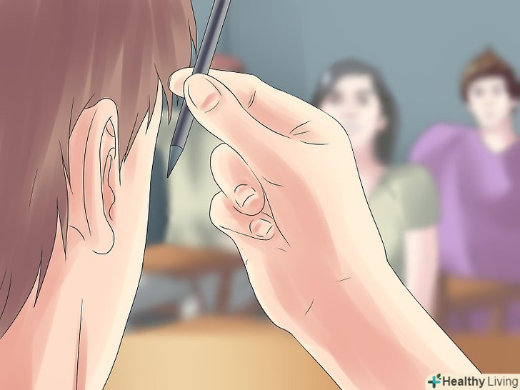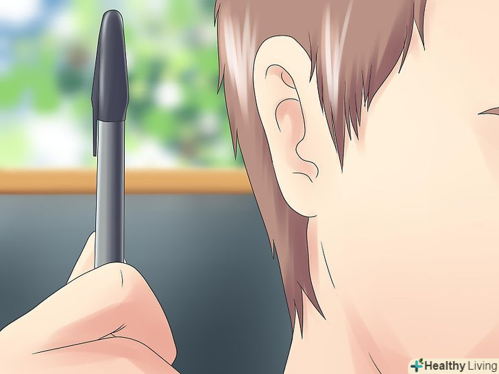 Втретє сховайте ручку за вухо. ось тут найскладніше. Коли ви будете піднімати руку вгору втретє, акуратно і непомітно покладіть ручку за вухо. Робити це потрібно дуже плавно. Не забувайте ворушити другою рукою перед собою, відволікаючи глядачів.- Важливо вважати вголос, щоб ви могли точно визначити, коли слід підняти руку. Спробуйте кілька разів швидко піднімати руку, щоб ніхто нічого не помітив.