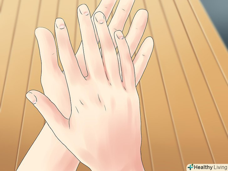 Середнім пальцем підштовхніть ручку до зап'ястя. потренуйтеся перед тим, як показувати фокус друзям. Середній палець повинен штовхнути ручку в долоню, де ручка пробуде частки секунди. Намагайтеся зробити це дуже швидко і непомітно.- Поверніть великі пальці вгору, коли палець штовхне ручку. Так пальці приховають ручку від глядачів. Поки ваші пальці повинні дивитися всередину, як якщо б ви хотіли показати комусь схвальний знак.