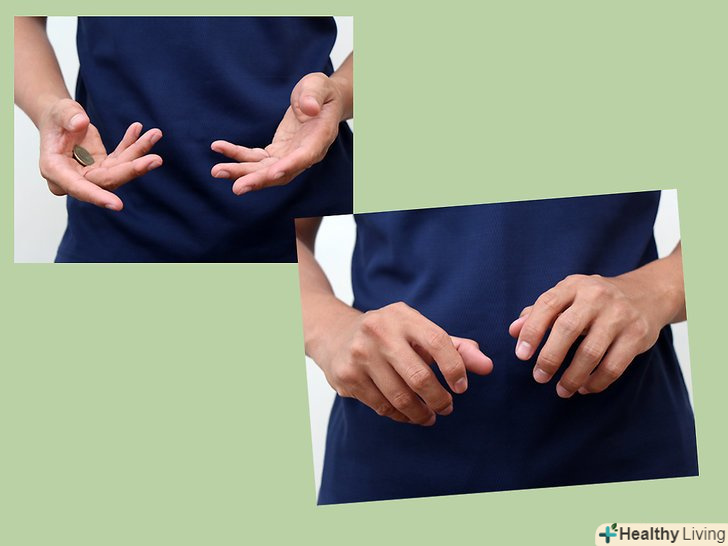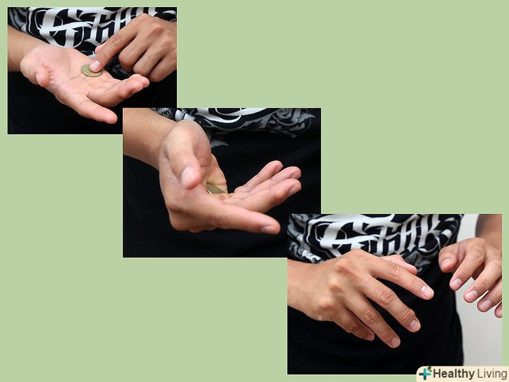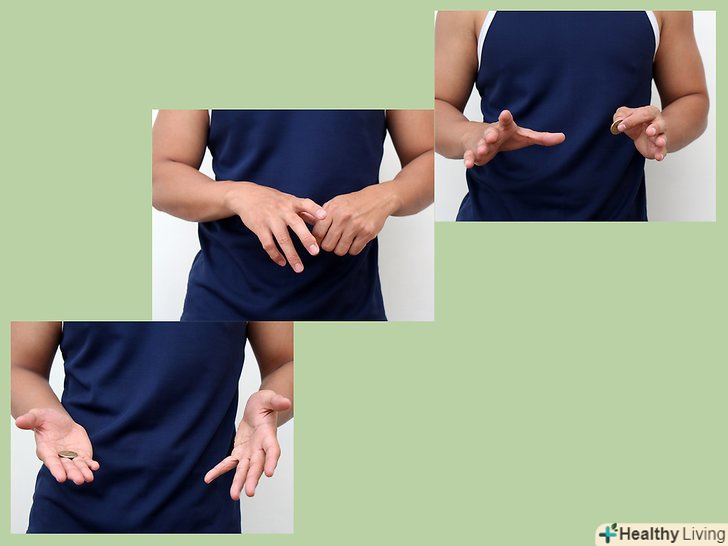 - Утримуйте монету м'язами долоні. за допомогою одного з методів, описаних вище, утримуйте монету долонею. Утримуйте монету так, щоб інші не побачили, як сильно напружені м'язи вашої руки.