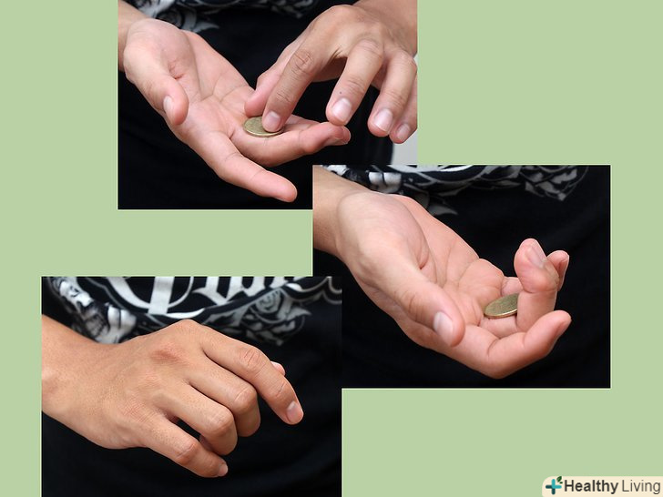 - Утримання монети за допомогою пальців. Спробуйте утримати монету середнім і безіменним пальцями. Ваші пальці повинні бути трохи зігнуті. Цей спосіб досить простий у виконанні.