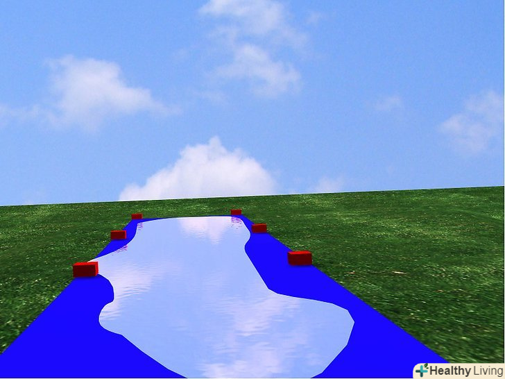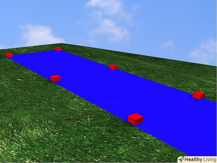 - Закріпіть верх і низ гірки камінням, і якщо у вас достатньо скотча, приклейте бічні краї до трави на відстані кожних 25 см.