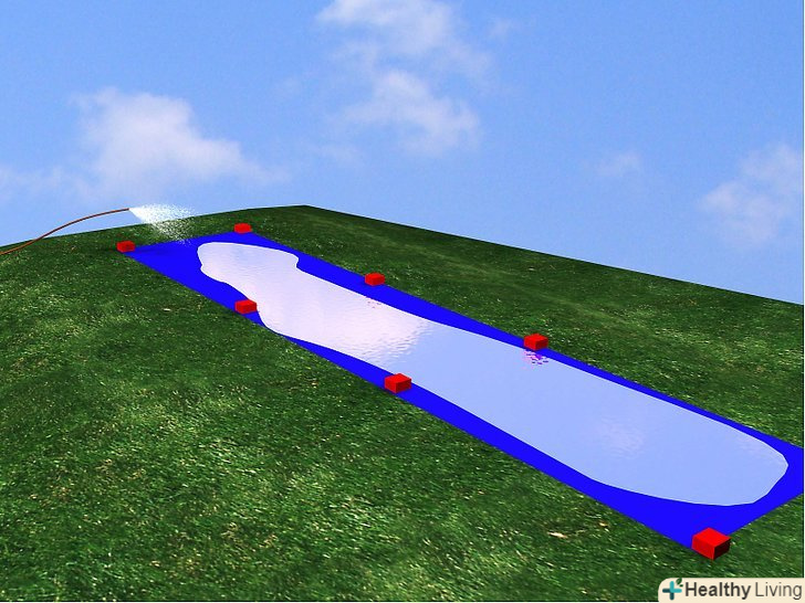 Намочіть доріжку водою зі шланга. намочіть гірку уздовж всієї її довжини, і встановіть шланг у верхній частині гірки так, щоб свіжа вода безперервно лилася на гірку.- Добре підійде для катання також дощовий день! Просто не грайте у воді, якщо намічається гроза-Блискавка може пропалити вашу гірку, і вона не безпечна для тих, хто катається.