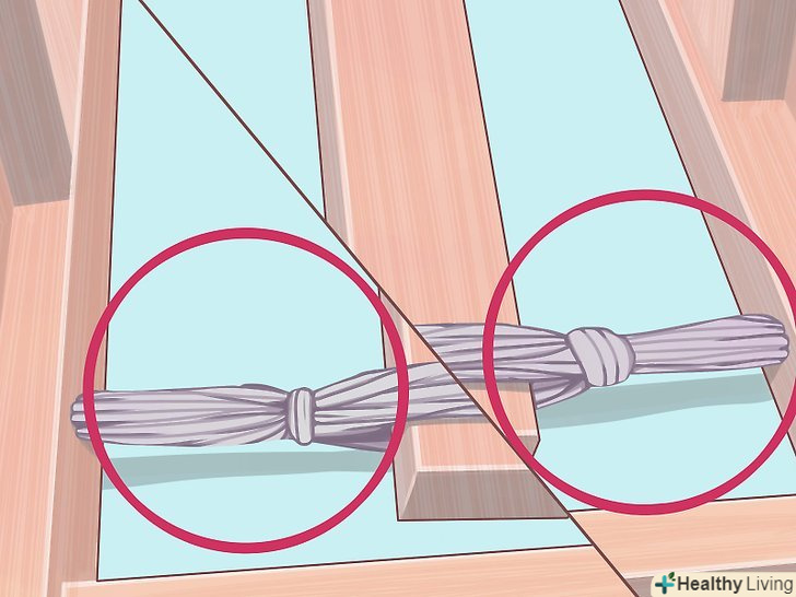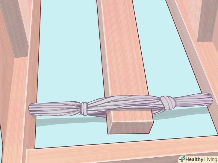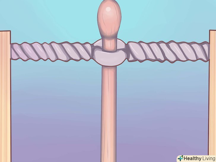 Закріпіть всі частини разом. для початку обв'яжіть мотузку навколо першої рукоятки посередині, простягніть мотузку крізь всі отвори, так само обв'яжіть навколо іншої рукоятки і протягніть крізь дірки в зворотну сторону. Повторіть це три рази.