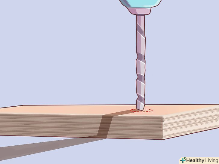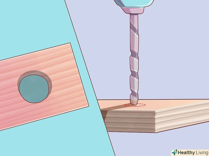 Просвердлите отвір в основі. просвердлите отвори діаметром 254 мм з кожного боку підстави на відстані 15 см від краю 91 см дошки (того, на який спрямований гострий кут трикутника) і 6 см від нижньої сторони підстави.