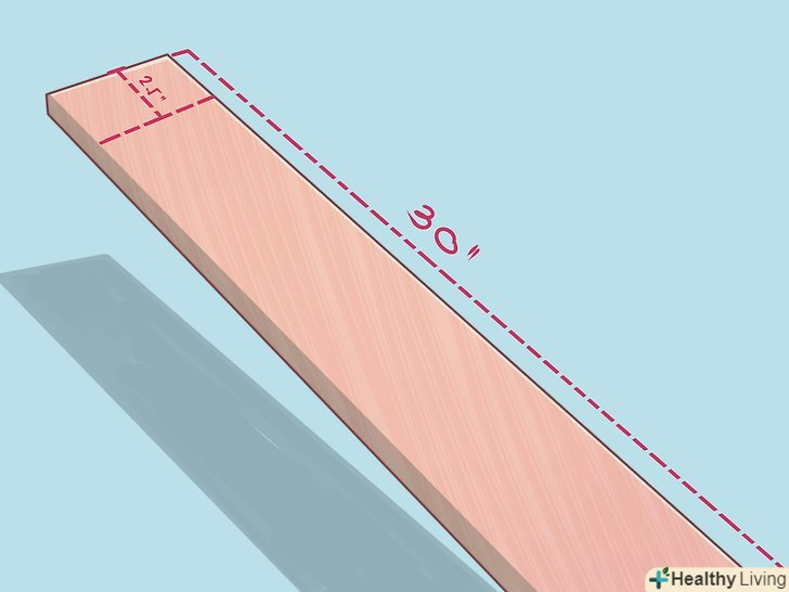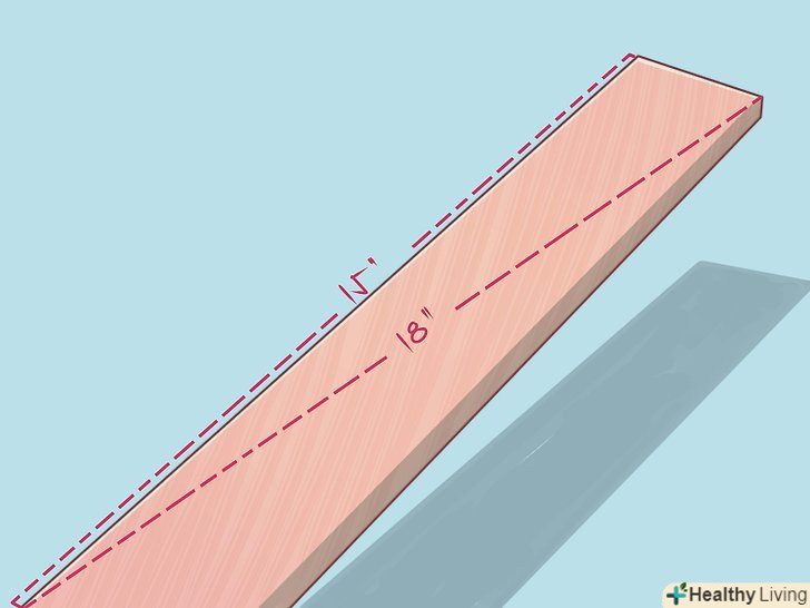 Складіть ліву сторону. покладіть дошку 91х5х10 см широкою стороною на стіл або якусь іншу тверду поверхню. Розташуйте брусок 38х5х10 см так, щоб його правий кут знаходився в 38 см від краю дошки довжиною 91 см.