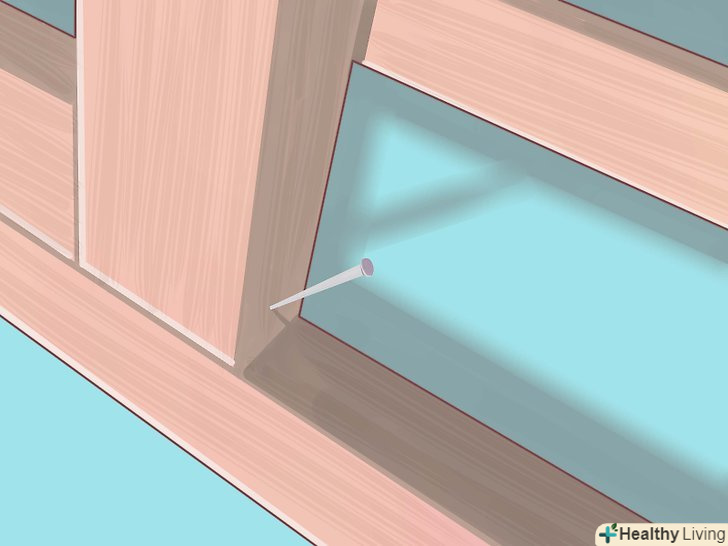 З'єднайте ліву сторону з лівим підставою. просвердлите два отвори в торці 38 см бруска і два отвори в 91 см дошці з краю у відповідному місці з'єднання. Змастіть клеєм і вставте штифти в обидва отвори в дошці, потім прикріпіть на них інший брусок. Підбийте молотком, щоб забезпечити щільне прилягання.