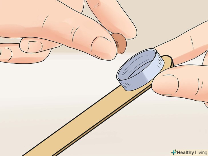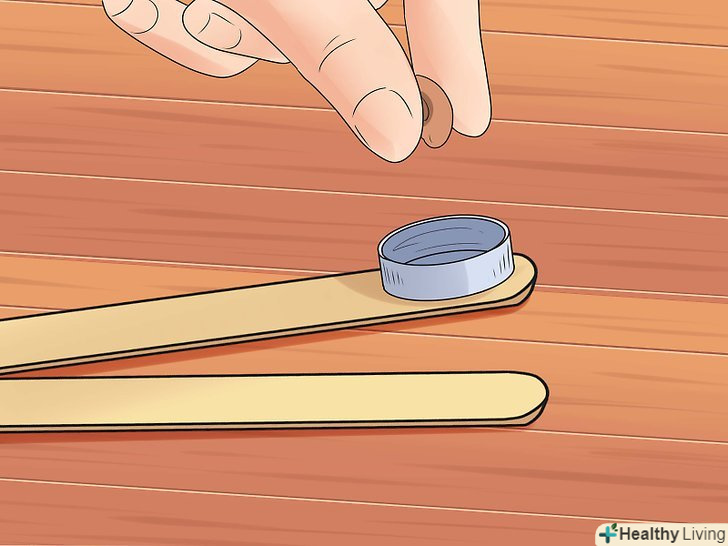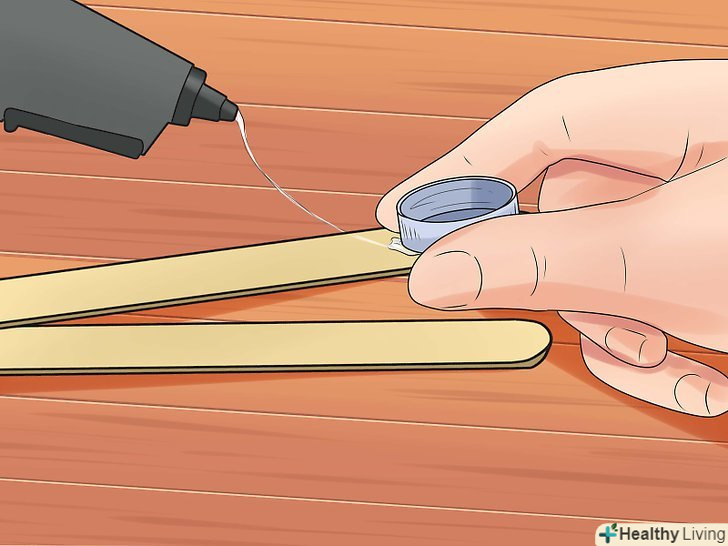 Додайте фінальні штрихи. Ваша катапульта майже готова, але ще пара кроків зробить її міцнішою і легшою у використанні!- Прикріпіть молочну кришку до вільного кінця важеля невеликою кількістю клею.