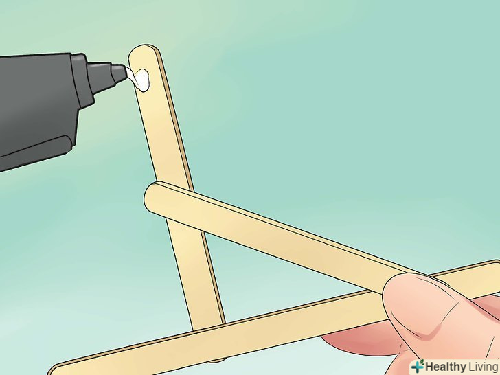 - Намажте трошки гарячого клею до середини опорної балки, яка паралельно стоїть до точки опори, і прикріпити шматочок палиці.